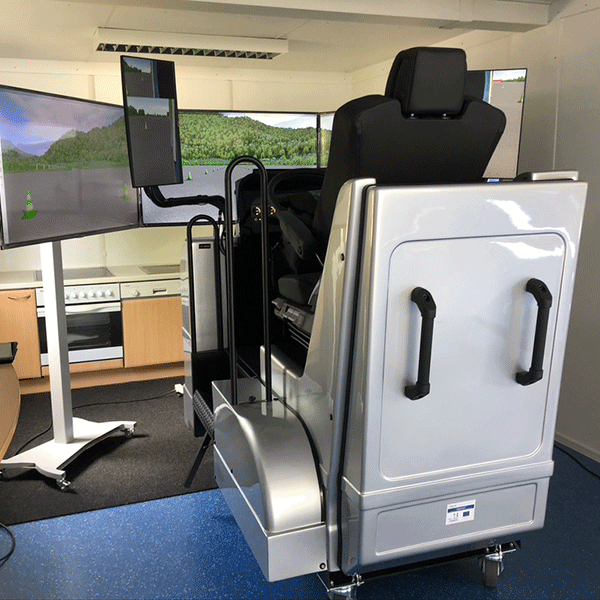 Praxisnah und realitätsbezogen ist die Ausbilung mit unserem Fahrsimulator. Unser Simulator entspricht der EU Richtlinie 2003/59/EG und ist daher für den gesamten Ausbildungsbereich für alle Berufskraftfahrer im Personen- und Güterverkehr geeignet.