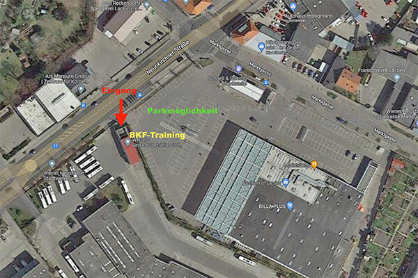 Unser Schulungsraum befindet sich an der Neunkirchner Straße, direkt neben dem Billa Plus Markt. Parkplätze sind ausreichend vorhanden.